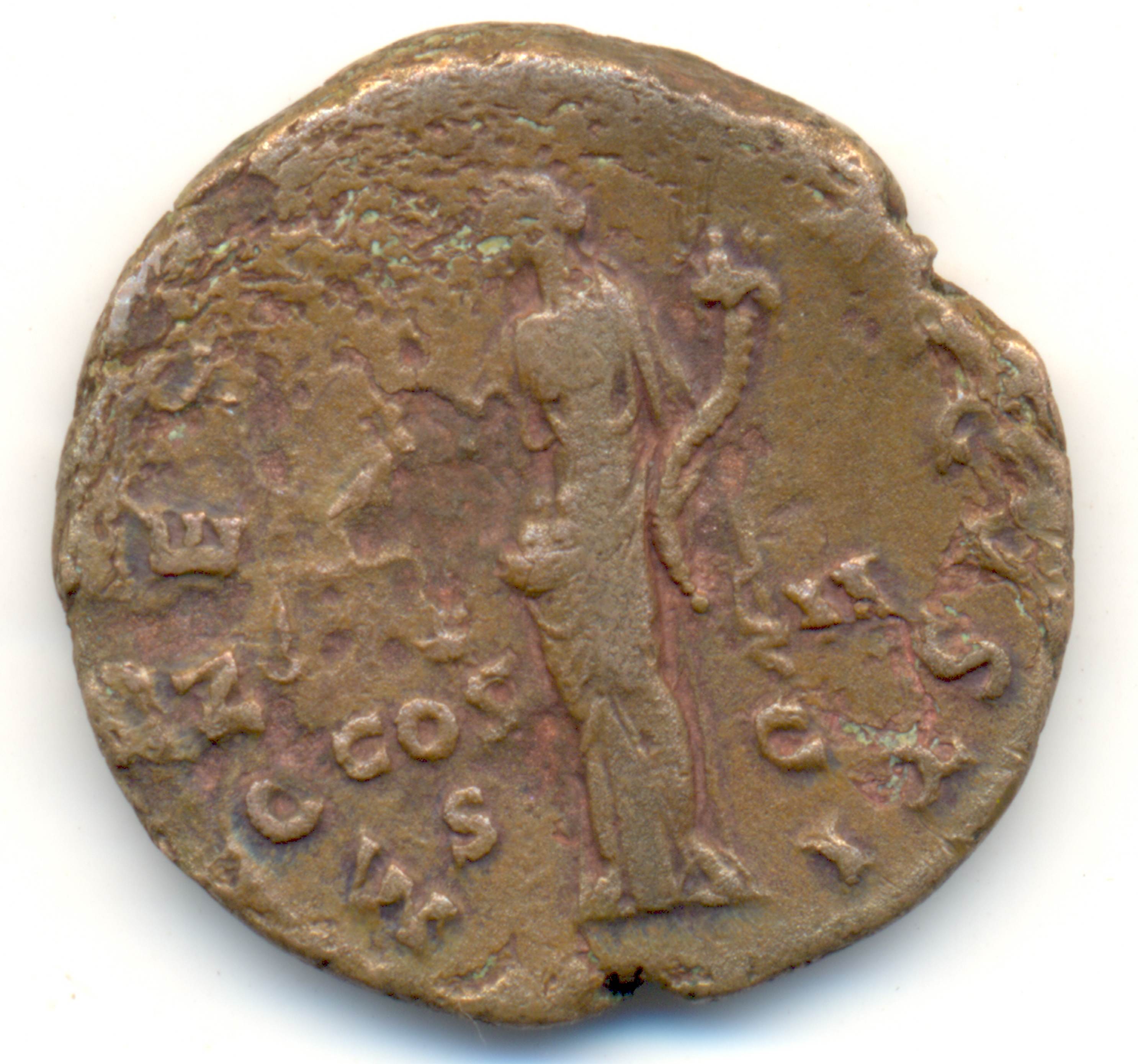 Это сестерций Антонина Пия 138-161 гг. Вот похожий: