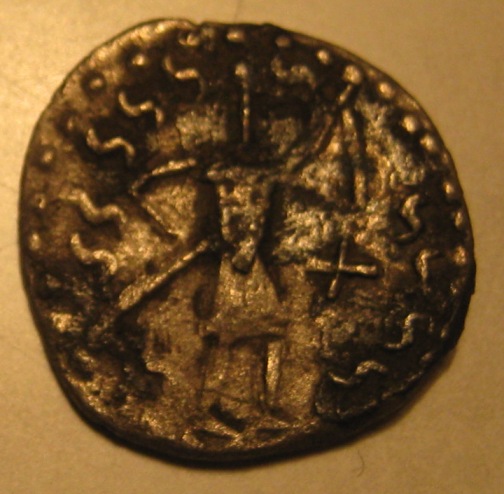 Прошу помочь в определении и оценке античной монеты. Регион находки-Крансодарский край. Вес- 2.05 грамма Вложенные эскизы изображений -------------------- Отрыл, нашёл- едва ушёл.