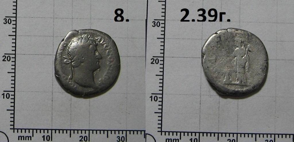 QUOTE(nbv @ Dec 17 2019, 23:33) Прошу помочь с определением, датировкой и примерной оценкой еще 3-х монет. № 7 . Денарий Фаустины II , 145-161 гг. ВЕНЕРА держит Викторию и щит . http://dirtyoldbooks.com/roman/id/fau2/fa2024.jpg № 8 . Денарий имп. Адриана , 134-138 гг. ЗДОРОВЬЕ кормит змею на алтаре . http://dirtyoldbooks.com/roman/id/had/had188.jpg № 9 . Денарий имп. Луция Вера , 163-164 гг. МАРС с копьем и шитом . http://dirtyoldbooks.com/roman/id/lverus/lver027.jpg |