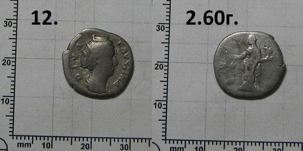QUOTE(nbv @ Dec 18 2019, 22:03) Здравствуйте. Спасибо за помощь в определении и датировке монет. Прошу помочь с определением, датировкой и примерной оценкой еще 3-х монет. № 10 . Варварское подражание денарию II века . № 11 . Денарий имп. Антонина Пия , 151-152 гг. ФОРТУНА с рулевым веслом и рогом изобилия . http://dirtyoldbooks.com/roman/id/ant/ant029.jpg № 12 . Посмертный денарий Фаустины I , 146-161 гг. ВЕСТА держит палладиум и симпулум . http://dirtyoldbooks.com/roman/id/faustina/fa043.jpg |