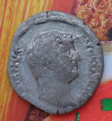 Hadrian Denarius. HADRIANVS AVG COS III PP, bare head right / VICTORIA AVG, Victory seated left, holding wreath and palm. RSC 1461. |