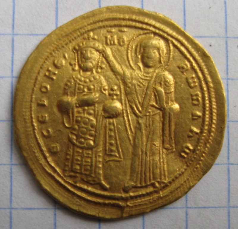 Здравствуйте,Господа Знатоки! Товарищ нашел где-то в огороде вот эту монету. Очень похоже на солид Романа III. Вес: 4,39. Диаметр: 2,5. Я сказал,что это,скорее всего китайский сувенир,фуфло. Товарищ расстроился,но уверен что нет. Рассудите нас,пожалуйста,Знатоки. Зараннее благодарен и уважением - Аленус.