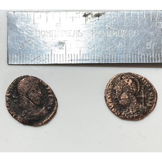 http://dirtyoldbooks.com/roman/id/constan2/cs2187.jpg 2 . Коммеморативная бронза имп. Константина I , 330-333 гг. Перенос столицы из Рима в Константинополь . http://dirtyoldbooks.com/roman/id/anon/016.jpg RIC 188 (VII, Thessalonica) AE3 Obv: CONSTANTINOPOLIS - Constantinopolis helmeted, laureate bust left, holding scepter over shoulder. Rev: No legend Exe: SMTS - Victory standing left, stepping on galley prow, cradling scepter and resting hand on shield. 330-333 (Thessalonica). Монеты не редкие и состояние их не коллекционное . |