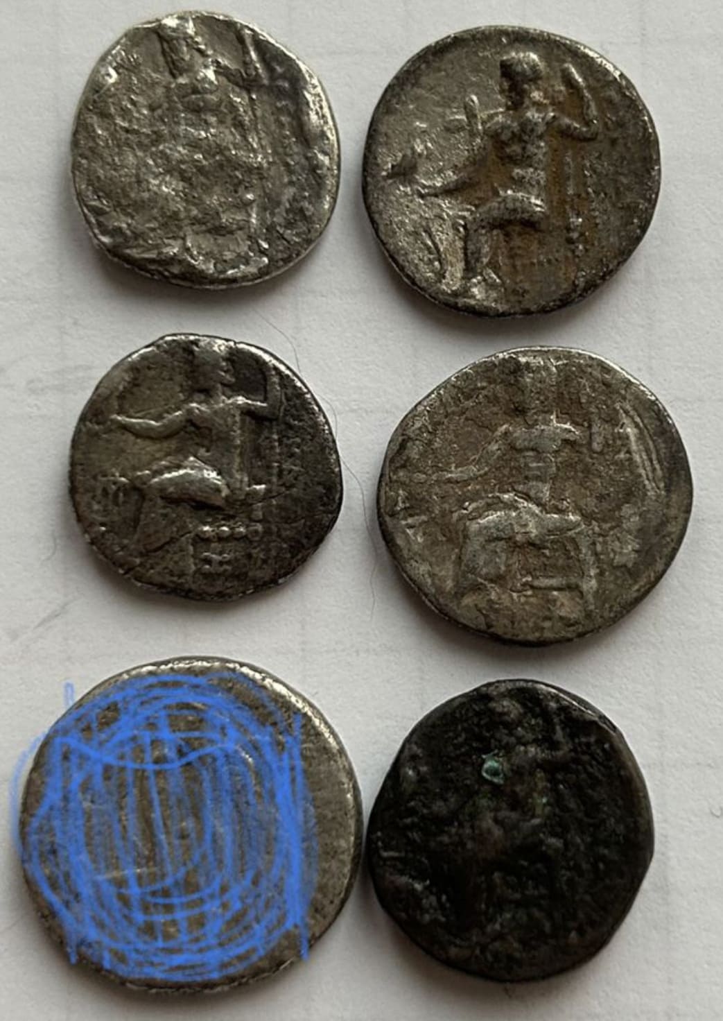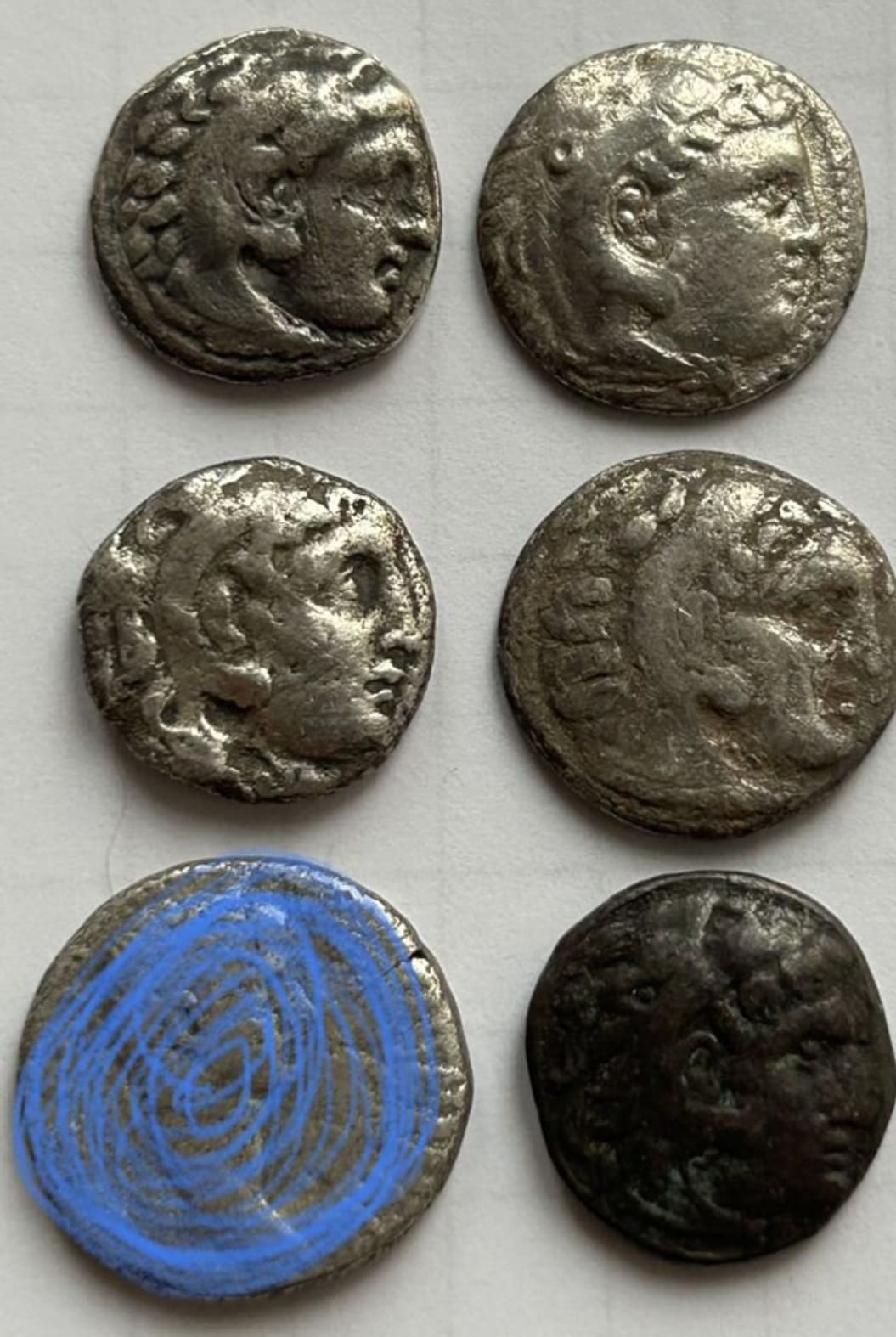 По такому фото первые 4 - подлинные драхмы Александра III .