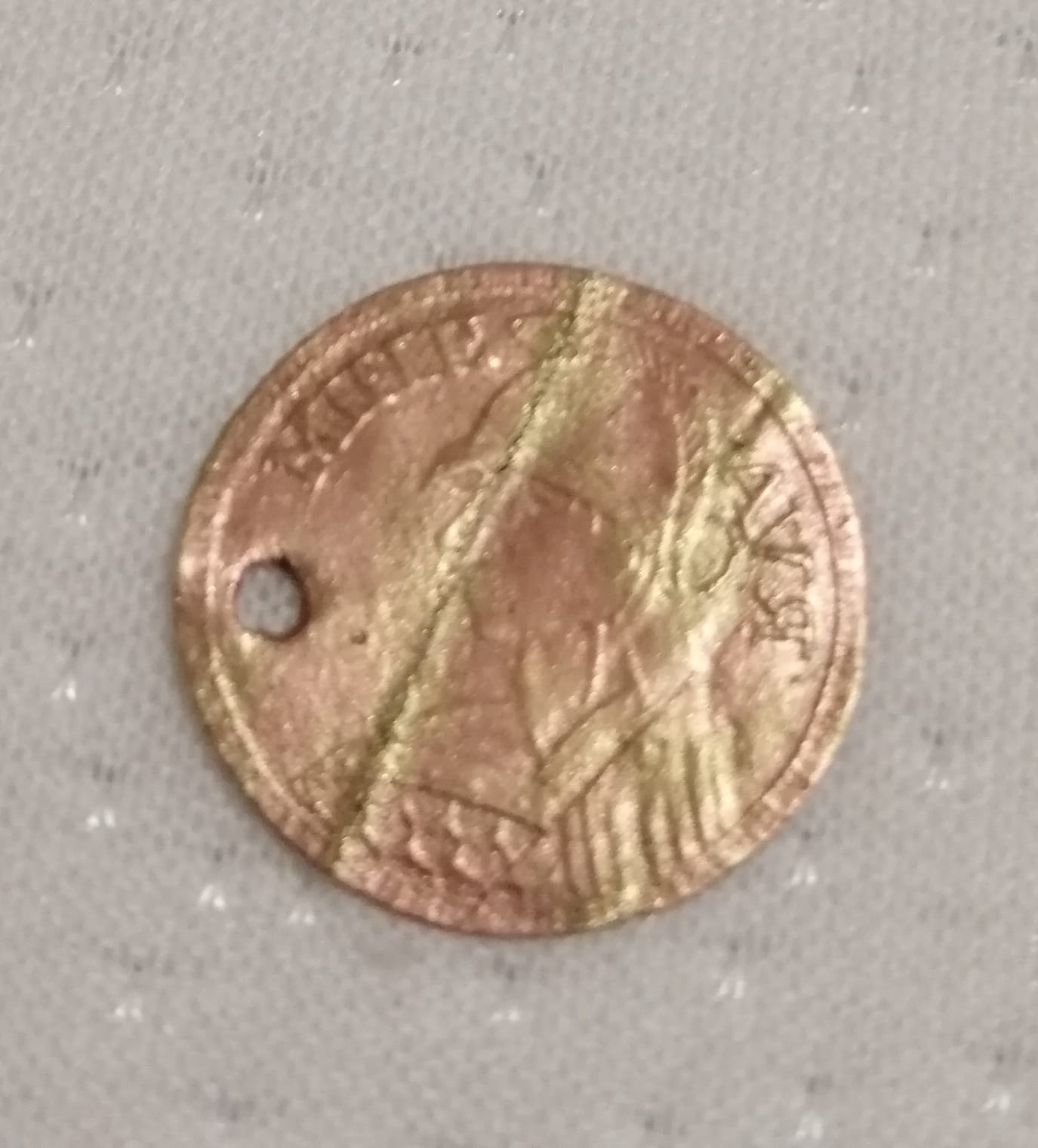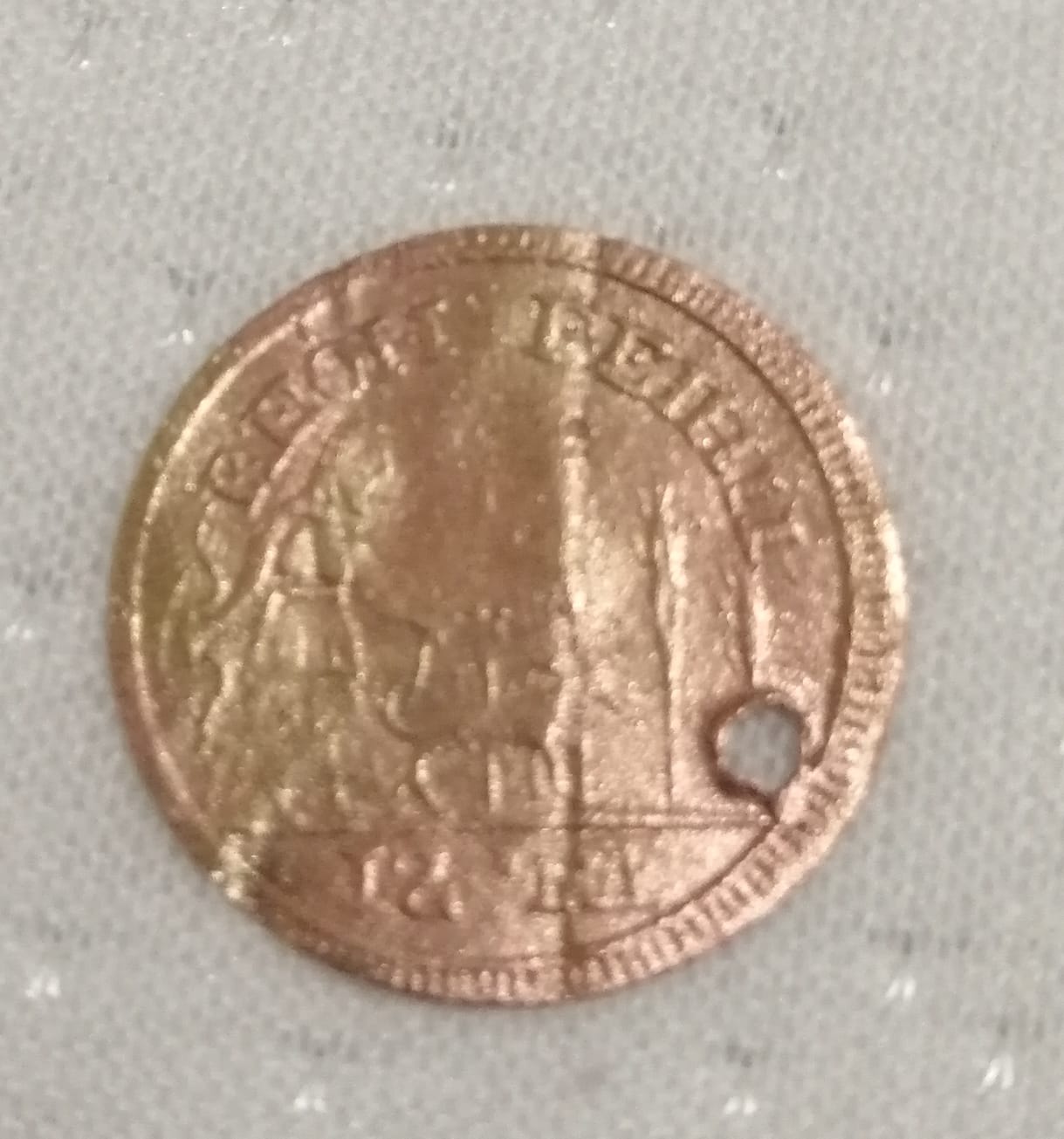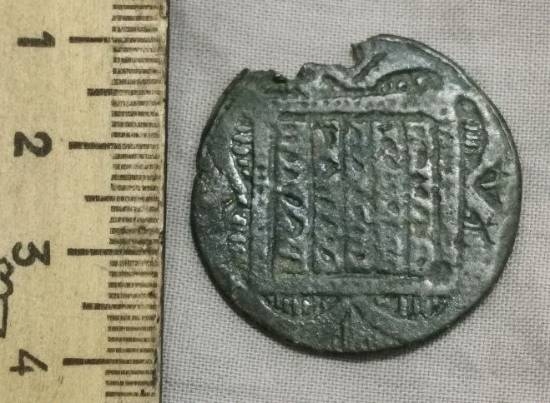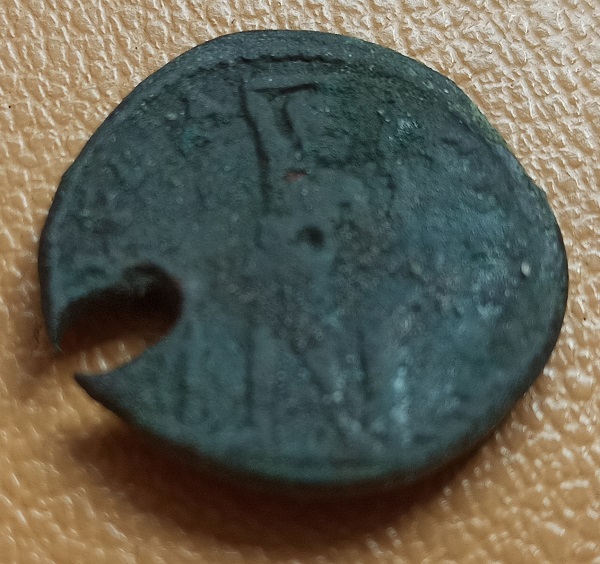 Чего то римское. Надо в императорах порыться. Отверстие жалко как раз по началу имени проходит.