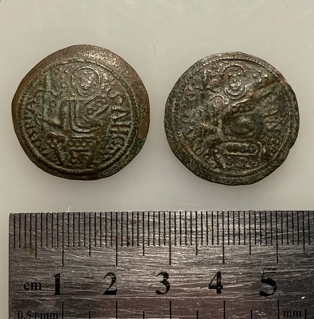 Помогите пожалуйста с определением монет и с редкостью , если она есть. Монеты очень похожи, но отличаются по форме: одна чашечка, вторая плоская ( возможно из-за деформации плугом - была сложена пополам. Хотя ощущение, что она изначально была плоской. Также разный вес: чашечка 2,82 г, плоская 2,24 гр И одиночные портреты на мой взгляд различаются. Заранее благодарен! С уважением, Виталий Вложенные эскизы изображений |