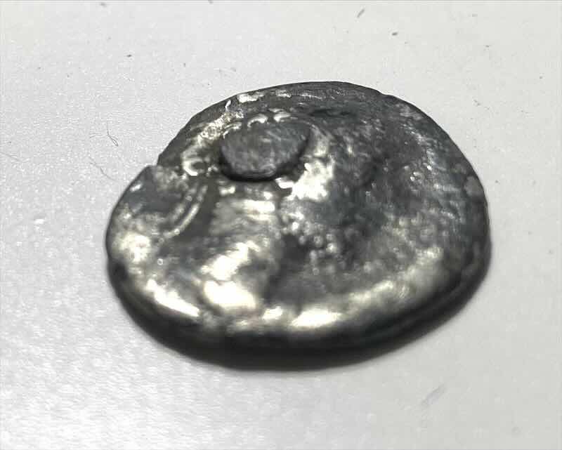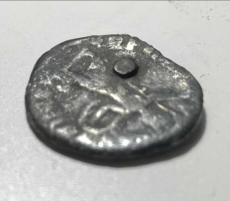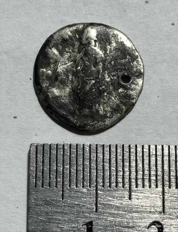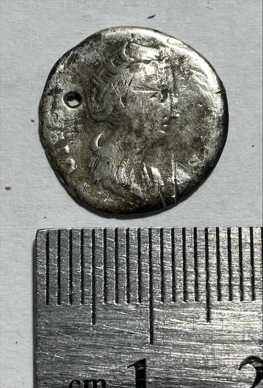 Просьба определить монету и, если возможно, ответить на вопрос. В монету вбито что-то типа маленького гвоздя. Материал точно определить невозможно, но исходя из того, что признаков ржавчины нет, это какой-то цветной металл. Монета найдена не на территории Римской империи, а на сопредельной, заселенной в тот период языгами. Может кто-то знает, зачем она пробита таким странным способом? Заранее благодарю! С уважением, Виталий Вложенные эскизы изображений |