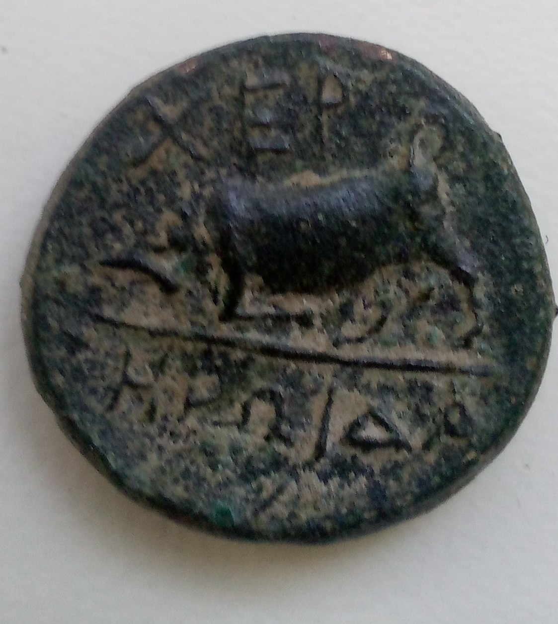 1 . Херсонес . 9 оболов 250-230 гг. до н. э. НРАКЛЕОY . № 118 , В. А. Анохин 1977 г.