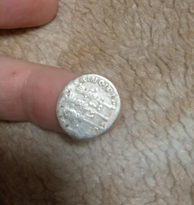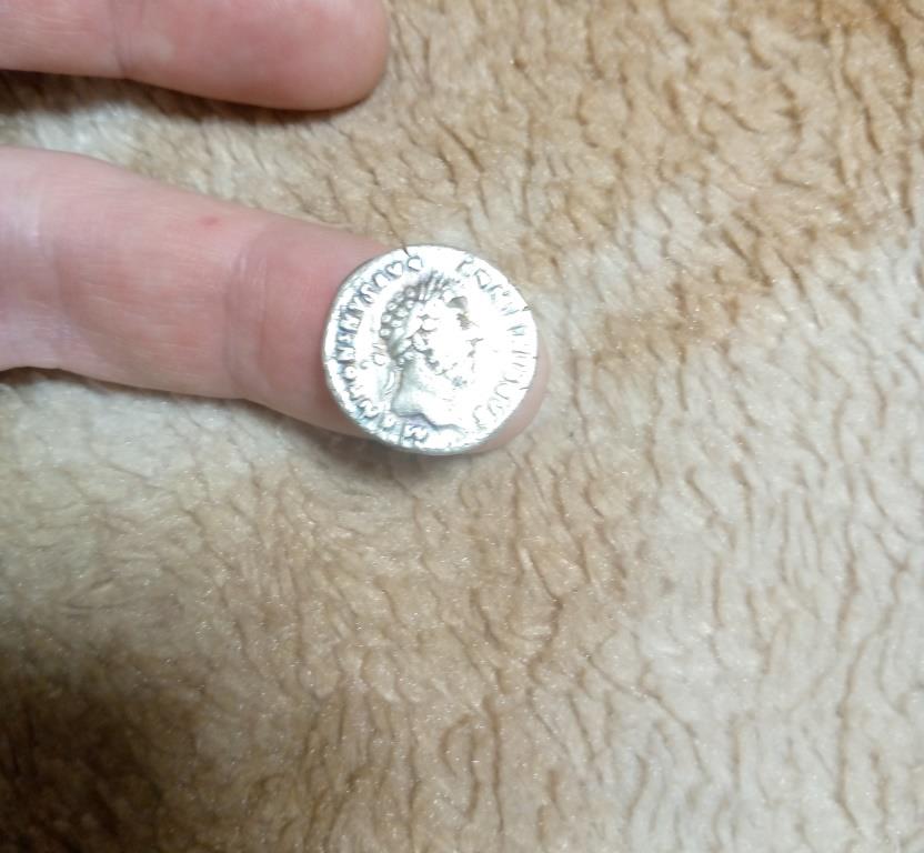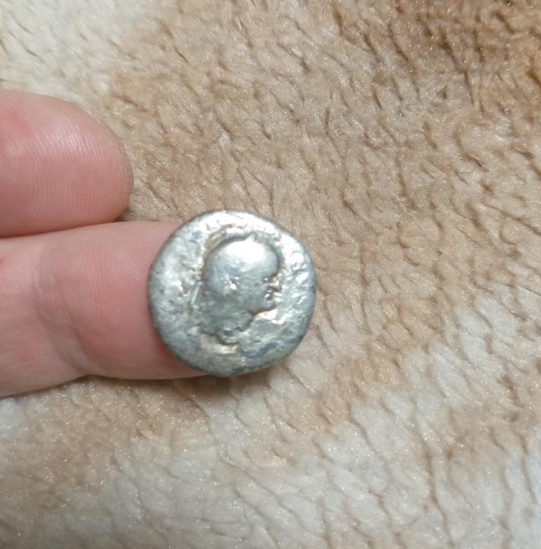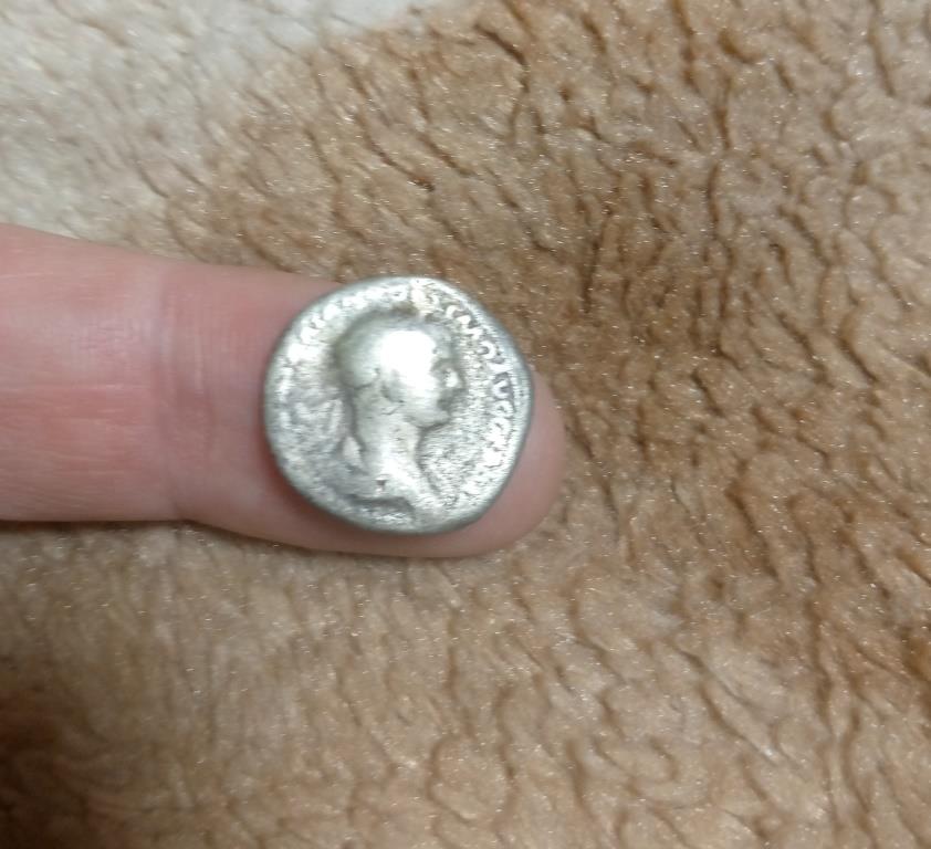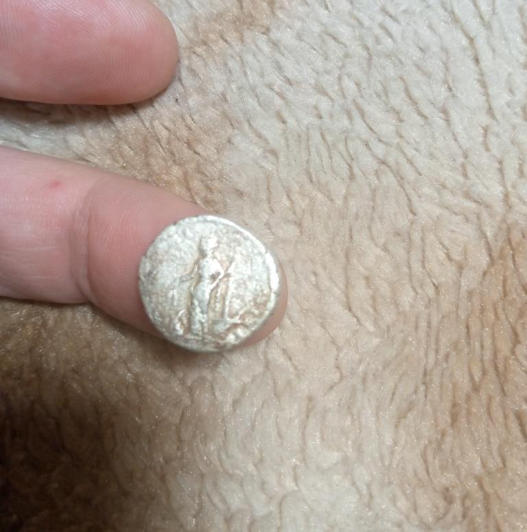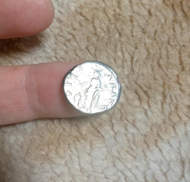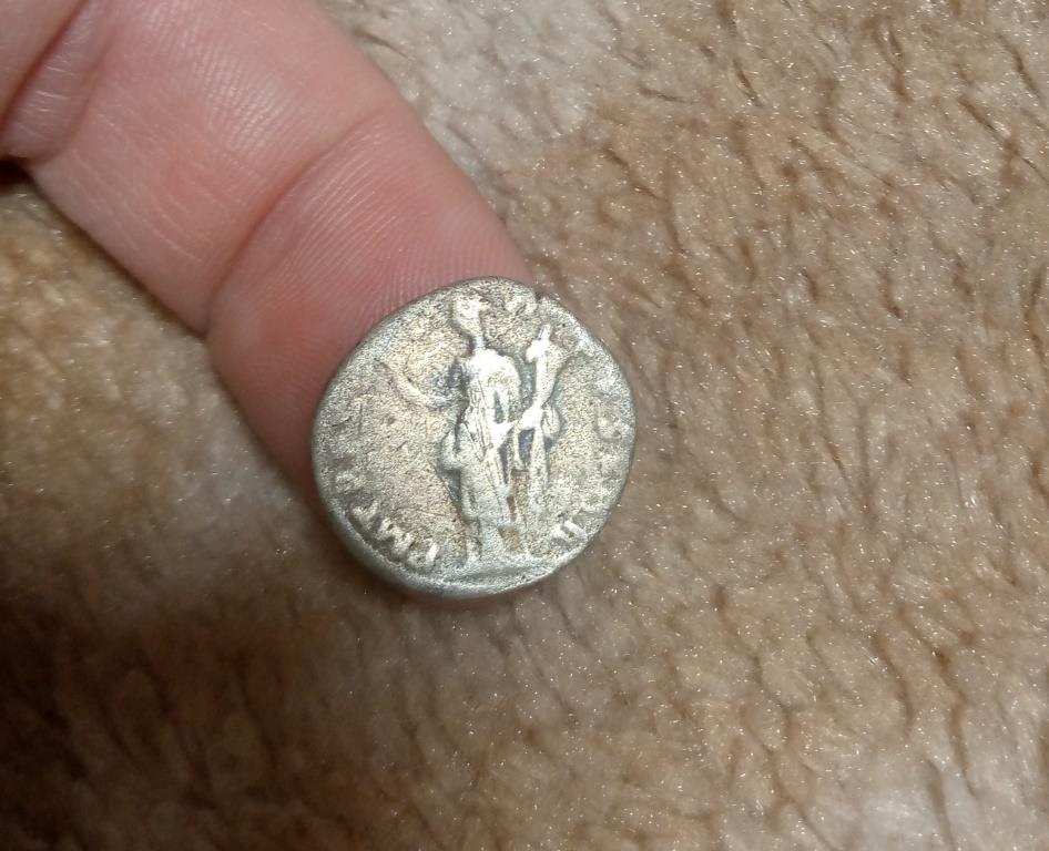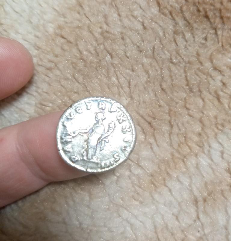 3. Имп. Траян , 114-115 гг. Фелицита держит Кадуцей и рог изобилия . Только на моём денарии изображение на обороте другое. человек с копьём изображен и не фелицита и рог изобилия???