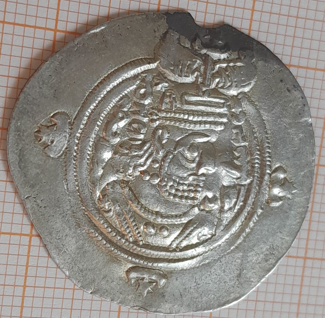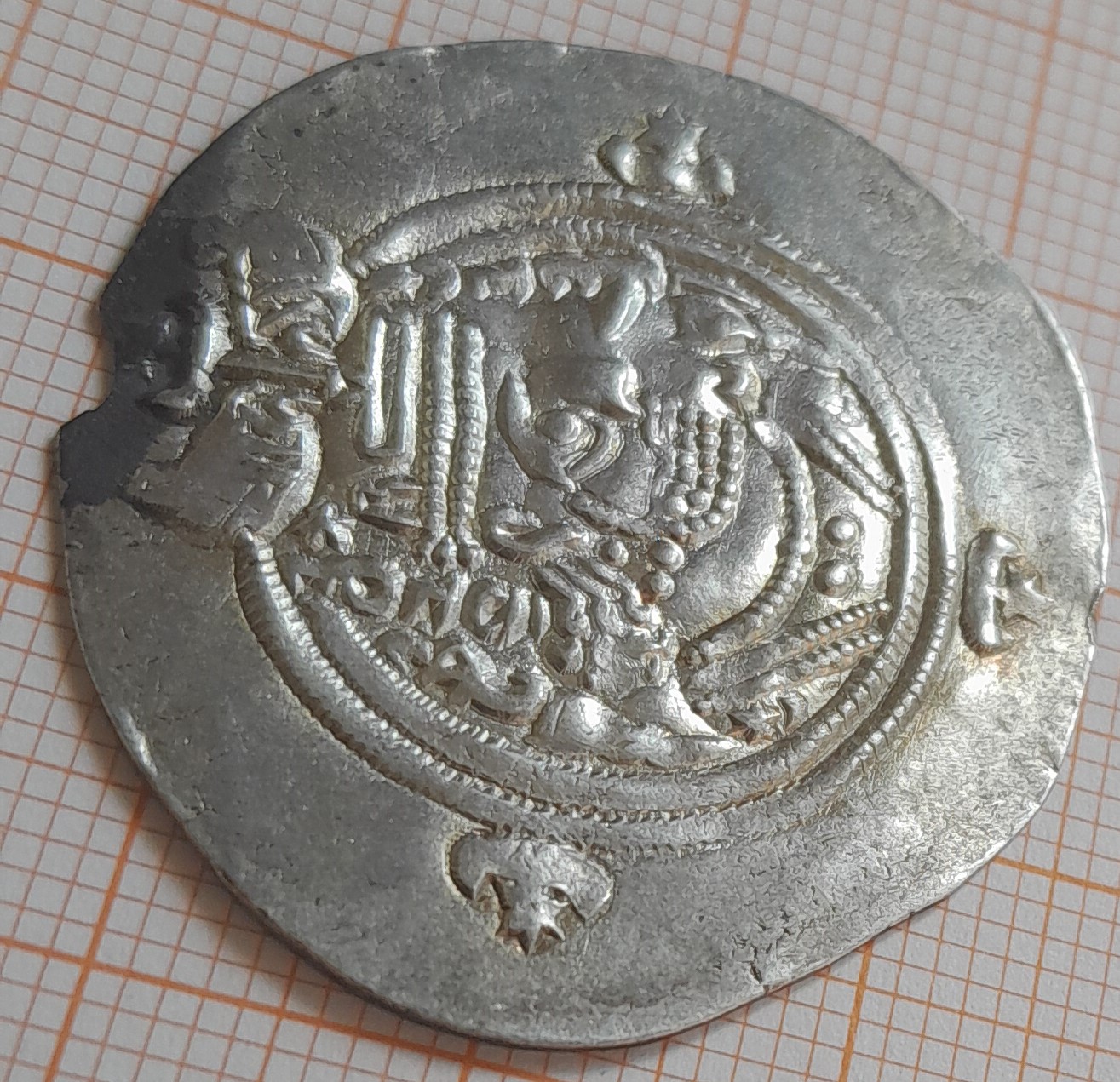 Уважаемые коллеги! Драхма Сасанидов 4,13 гр.31х34 мм. помогите определить правителя, год чекана и монетный двор.