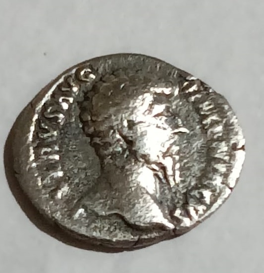 http://dirtyoldbooks.com/roman/id/lverus/lver027.jpg RIC 515 (Marcus Aurelius), BMC 282, C 229 Denarius Obv: LVERVSAVGARMENIACVS - Laureate head right. Rev: TRPIIIIIMPIICOSII - Mars standing right, holding spear and resting hand on shield. 163-164 (Rome). |