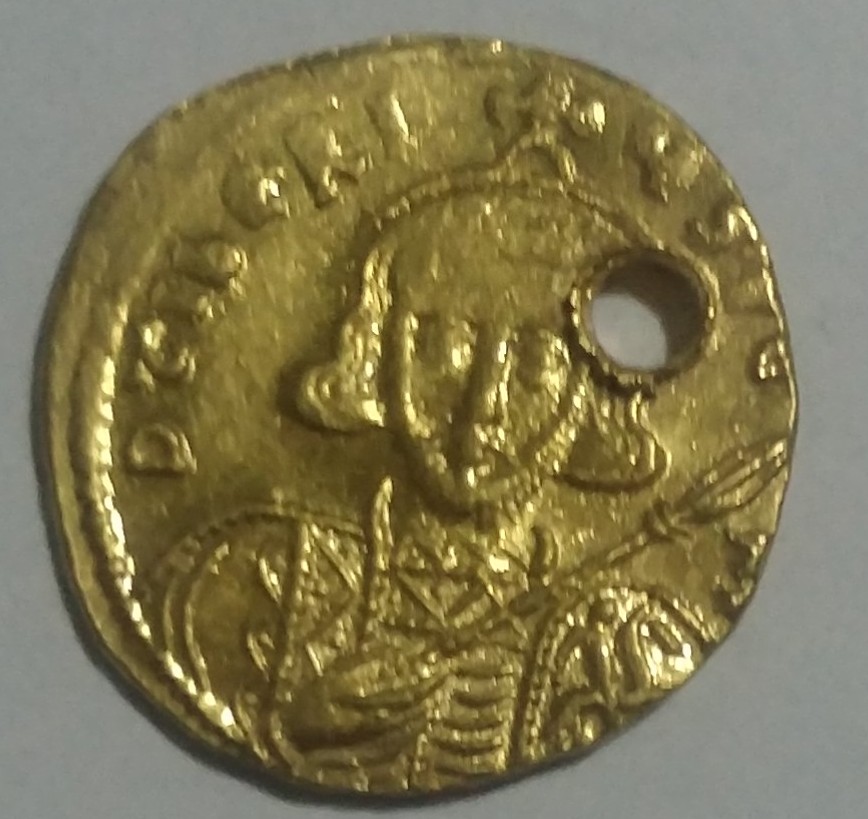 Сколько может стоить тогда солид Тиберия 3 Апсимара со степенью редкости R с той же проблемой отверстия в отличном сохране ,продажи которых идут от 150000 рублей!?П.С может и прийдем к какому-то знаменателю обе монеты с одного места 100% подлинность!