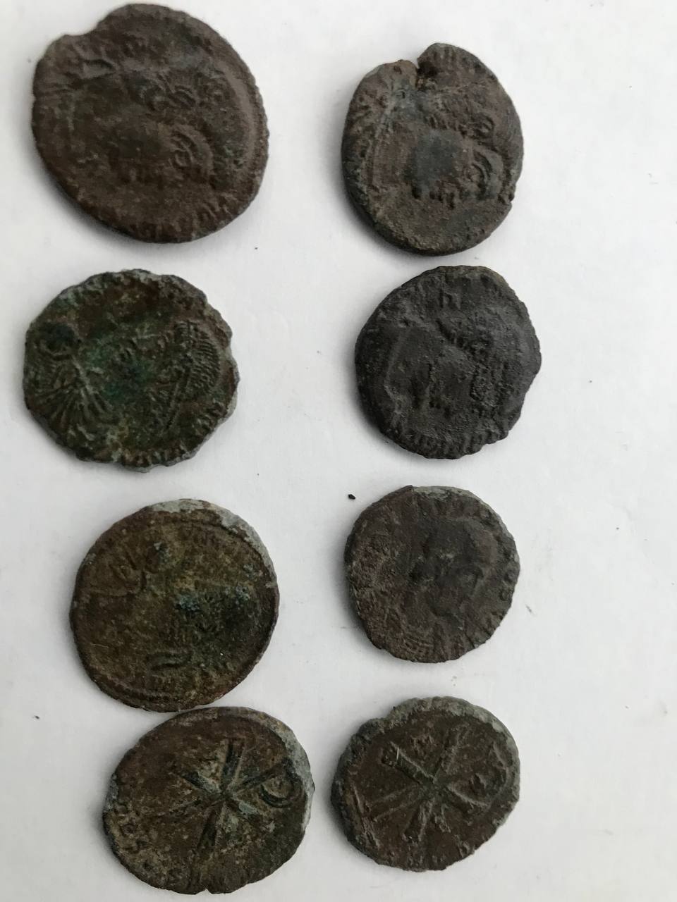 Помогите пожалуйста определить монеты и оценить. Предположительно римские, а там не знаю, первый раз такое нашел. |