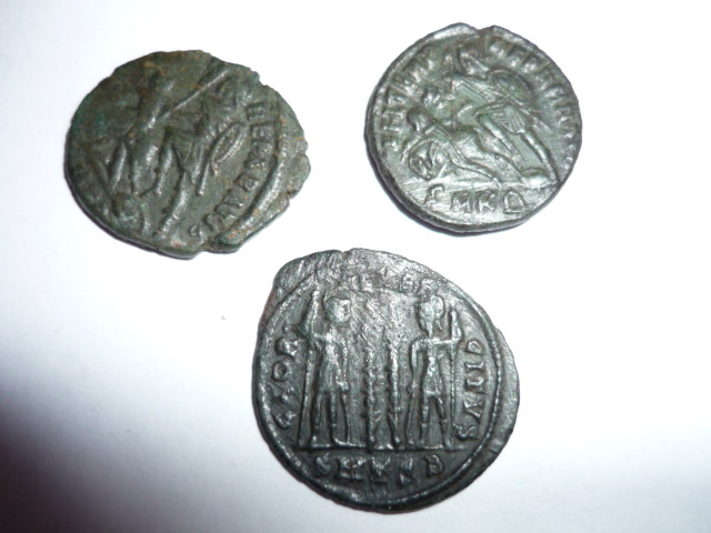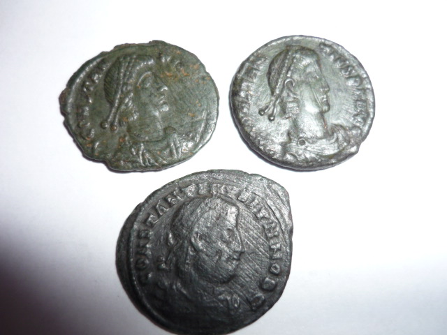 Верхние две монеты - АЕ-3 : послереформенные имп . Констанция II