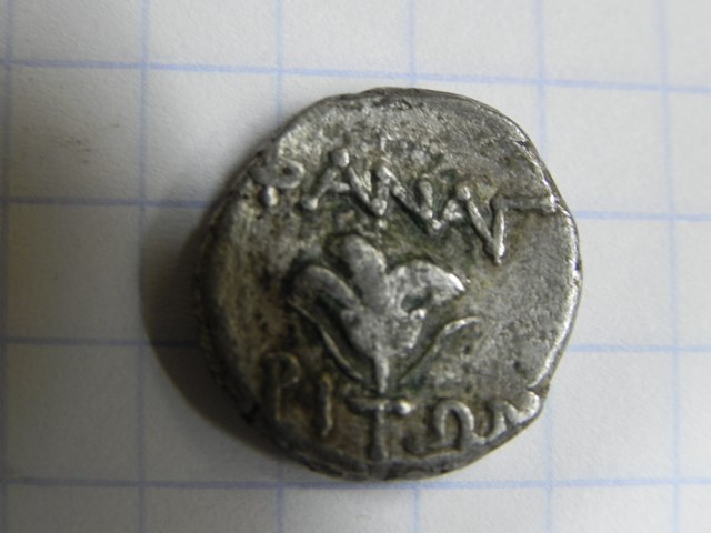 Помогите с орентироваться .Вроде пантикапей 214-3134 Аполон и орел на молниях . Но монограмма другая да и надпись непонятная типа sinoп или tinoп. вес монеты 7.78 гр. диаметер 20 мм.