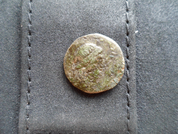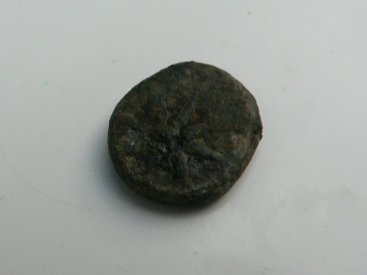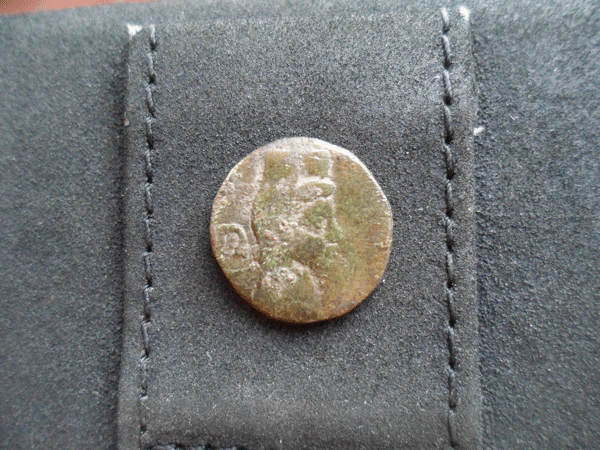 Добрый день. Прошу Вас помочь с определением монеты. Найдена под Анапой. Краснодарский край. Фотография не очень чёткая, поэтому нарисовал рисунок оттиска.