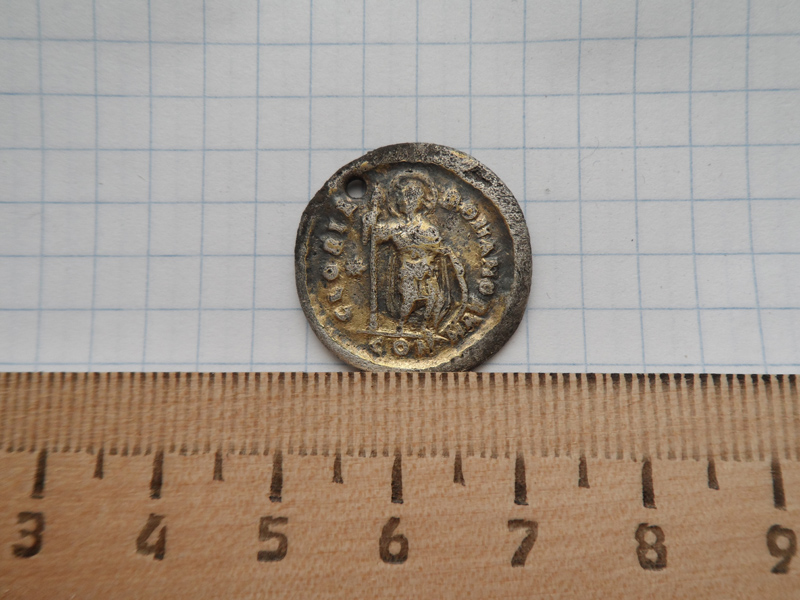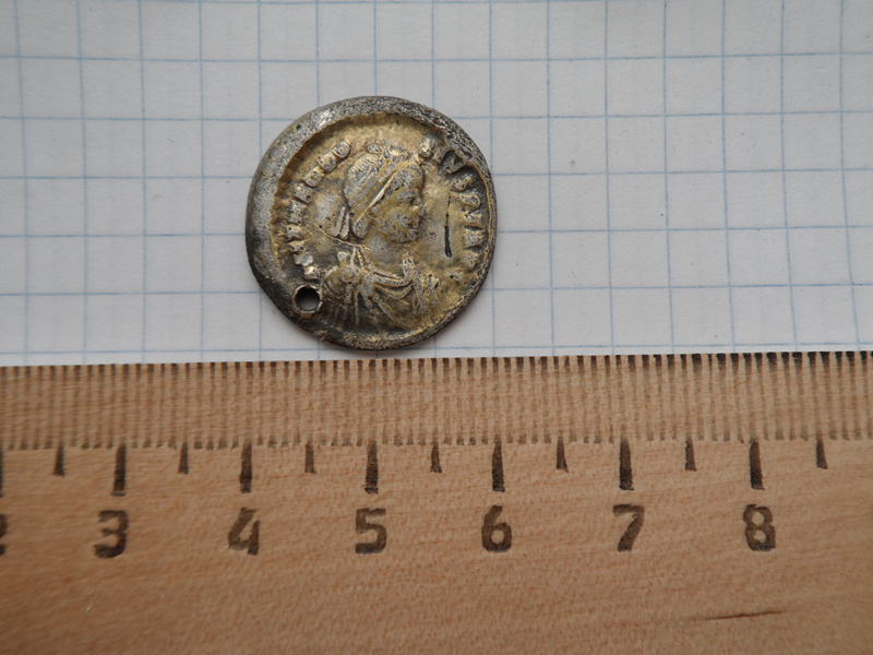 408-423 гг. в Константинополе .Легенда на реверсе : СЛАВА РИМЛЯНАМ. Так как монету использовали в качестве украшения , она когда-то , кем-то была позолочена . http://wildwinds.com/coins/ric/theodosius_II/RIC_0392.4.jpg http://wildwinds.com/coins/ric/theodosius_II/RIC_0392.4.txt http://wildwinds.com/coins/ric/theodosius_II/Sear_4294A.jpg |
