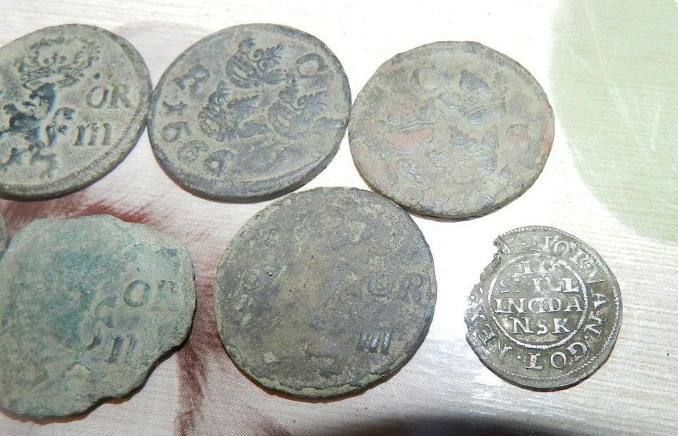 QUOTE(kastiil @ Nov 23 2012, 19:26) вот Эта монета короля Дании Фредерика III 1648 - 1670 гг. , остальные медные монеты - Швеция XVII век . |