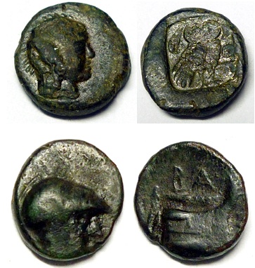 1. Афины. Вес 1,7 гр., диаметр 11 мм. АЕ. Интересует номинал и время чеканки. 2. Неизвестный мне эмитет. Вес 1,4 гр., диаметр 11 мм. АЕ. Интересует место и время чеканки. Заранее спасибо. Вложенные эскизы изображений |