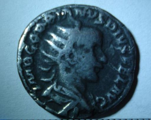 У Вас антониниан имп . Гордиана III , 241 год . Реверс - император вправо в военном снаряжении , держит копье и глобус .