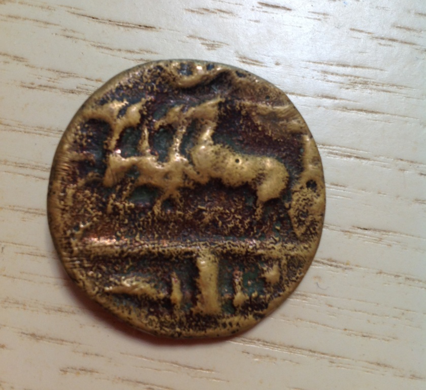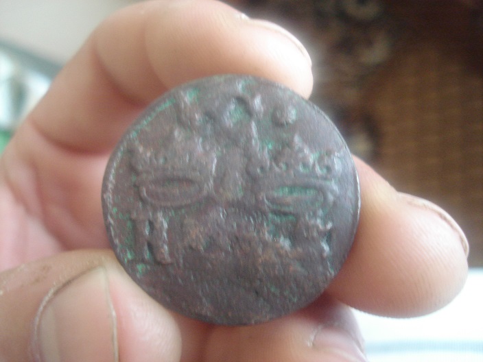 Здравствуйте, помогите определить,что это за монета, и монета ли?Т.К. эта вещь чем то напоминает античную монету, поэтому обратился к вам. Была найдена недалеко от церкви в М.О. вместе с пригоршней меди от Николая I до Николая II.