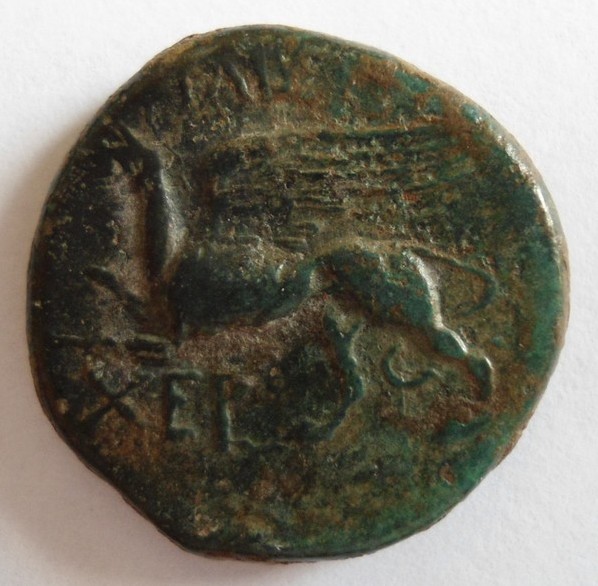 Имеется вот такой девайс. Склоняюсь к версии что это что-то из греческих колоний в Крыму. Прав ли? Если да,то что за номинал? С ув.,Илья. Вложенные эскизы изображений -------------------- каталог монет гиреев @giray_kepki