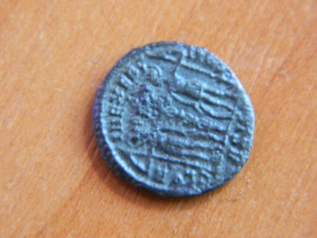 Бронза имп . Константина I , 335 - 336 гг . Реверс - СЛАВА АРМИИ . Цена ~ 10 $ .