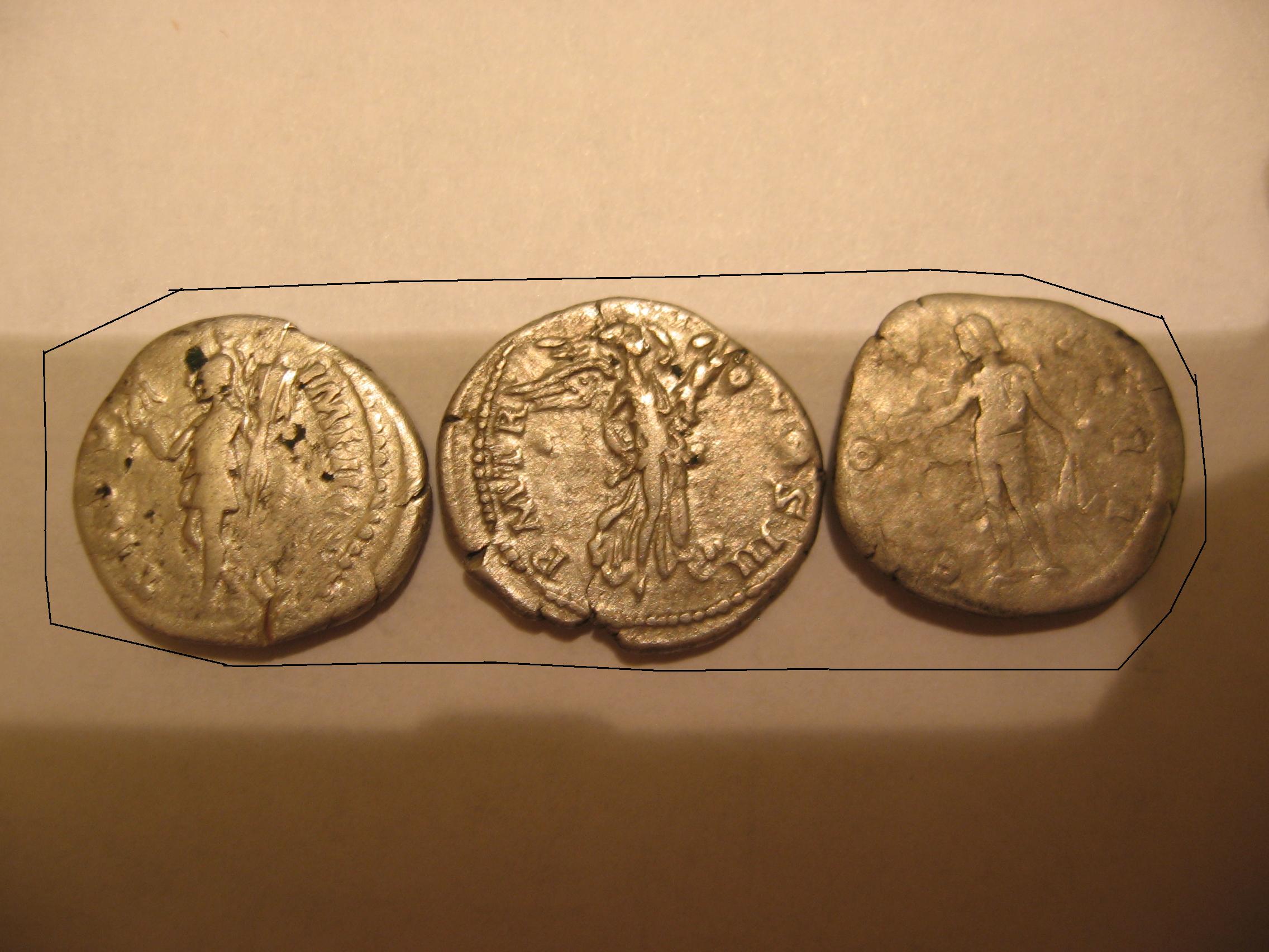 QUOTE(Вишар @ Sep 7 2014, 19:00) Всем обрый вечер!Вашему вниманию денарии вероятно из античного кошелька.Три монеты находившиеся отдельно просят атрибуции и оценки.Слипшиеся монеты в количестве 4 шт.в стадии отмокания выставлю после очистки.Просьба специалистов определить и оценить? Уважаемые специалисты если можно определите и оцените данные монеты, а так же подробнее по легендам и изображениям на реверсах монет? Вложенные эскизы изображений |