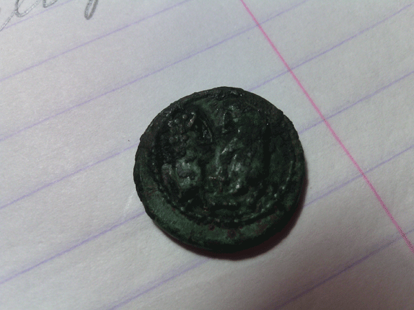 IMHO это не монета, а пломба, менее вероятно - печать.