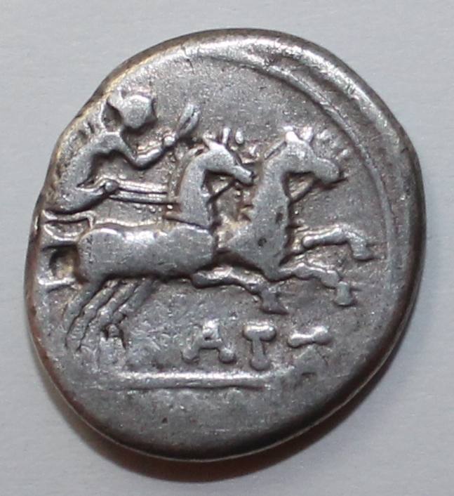 QUOTE(Nik_Viz @ Nov 9 2014, 19:45) Борисвет, спасибо! Да, принципиально этот тип. Но другие буквы под лошадьми (я так понимаю, что это - монетарий)!.. Pinarius Natta. 149 BC. AR Denarius (3.55 gm, 11h). Rome mint. Helmeted head of Roma right; X (mark of value) behind / Victory in galloping biga right, holding whip and reins; NATTA below, ROMA in linear border in exergue. Crawford 208/1; Sydenham 390; Kestner 1990; BMCRR Rome 844; Pinaria 1. EF, iridescent toning. -------------------- Говорят, что инвестиции в гидравлические прессы в последние годы увеличились на Сицилии