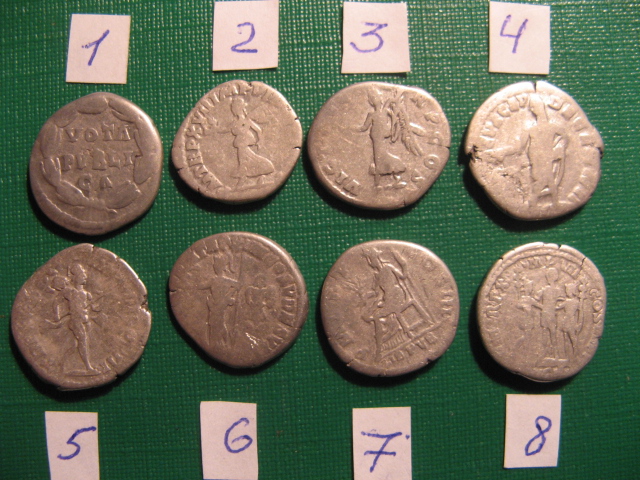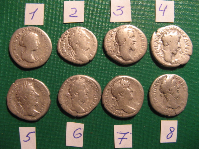 QUOTE(Wel @ Nov 29 2014, 10:51) Уважаемые форумчане! Подскажите пожалуйста по данным римским денариям: чьи 1. Луцилла 2. Коммод 3. Септимий Север 4. Марк Аврелий 5. Марк Аврелий 6. Коммод 7. Адриан 8. Коммод На мой взгляд средняя цена за денарий - 15$ |
