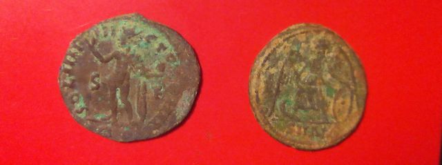 № 1 . Бронза имп . Константина I , 313 - 314 гг. Реверс - SOL божество Солнца .