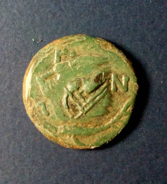 Если правая монета Октавиан Август то, что на обороте. Рог ? |