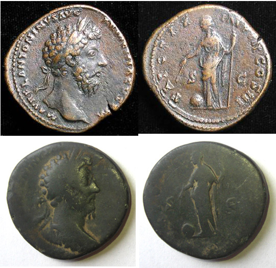 Вот сестерций Марка Аврелия вроде как у вас. http://www.vcoins.com/ancient/tomcederlind...p?idProduct=362 А вот Антонин Пий. http://www.vcoins.com/ancient/waynephillip...?idProduct=4877 -------------------- Fais se que dois adviegne que peut.
