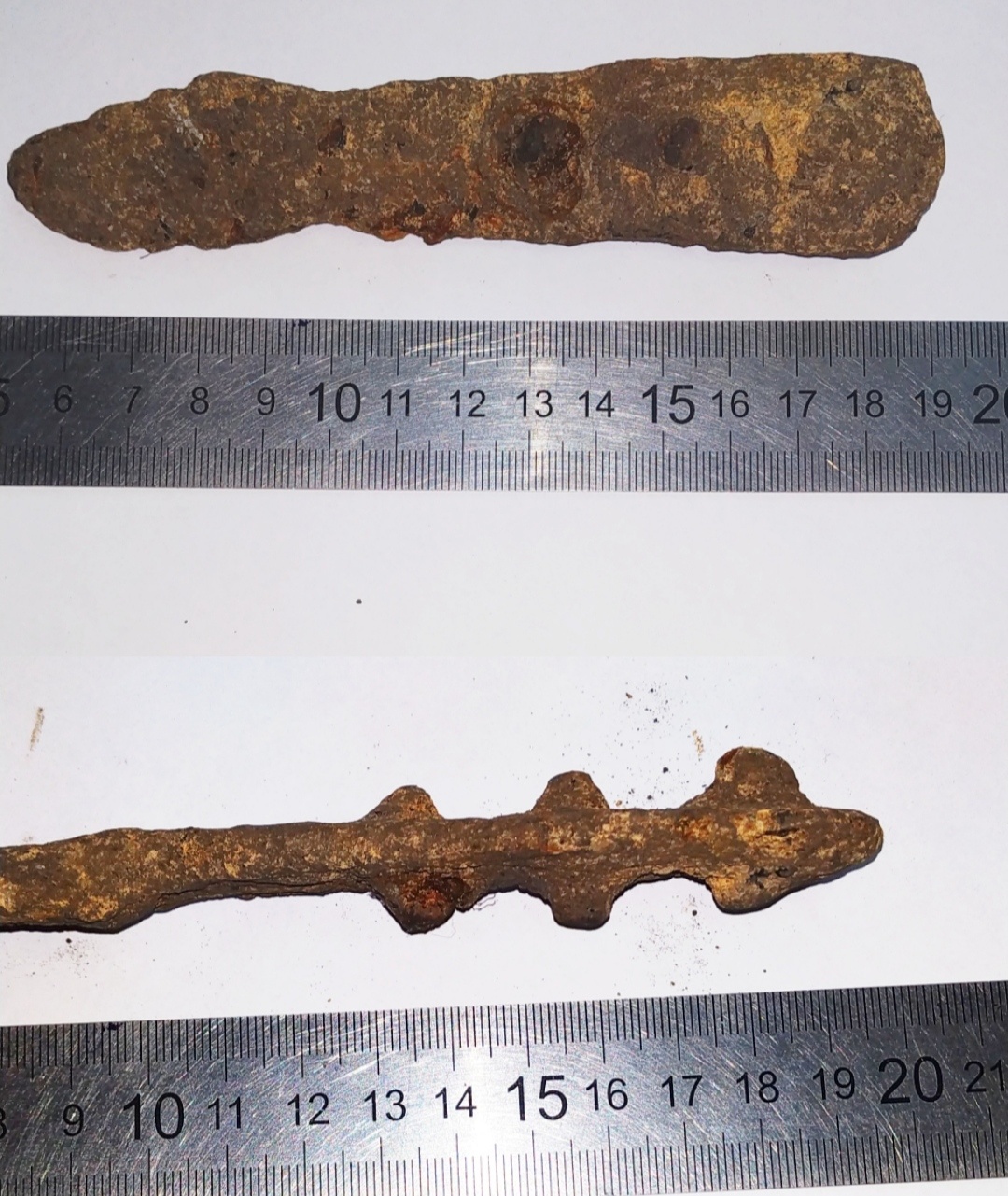 Неделю назад нашёлся. Мощный, тридцать сантиметров. Интересно каких веков? Очень похожий на том же месте несколько лет назад попадался.