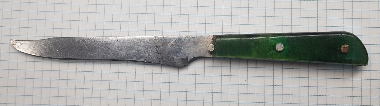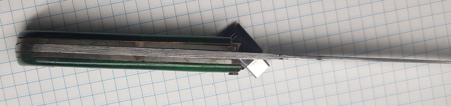 Находил за 10 лет поиска всего три штуки.Все использую .Один на работе.Со второго ручка пригодилась,а третий (на фото)дома.Интересно лезвие до ручки магнитится ,а в ручке металл не магнитный.Видно место соединения.Вот вопрос так было задумано,или ремонт того времени.