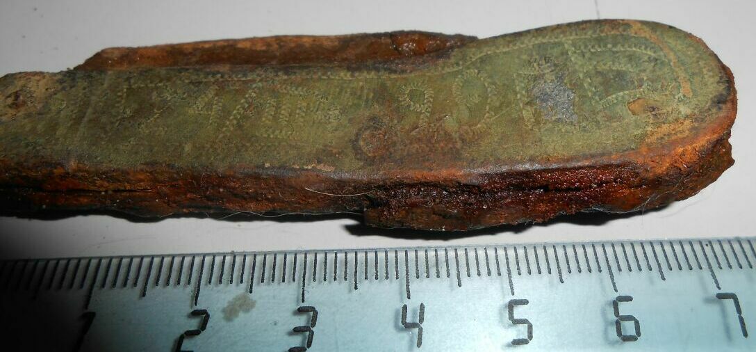 Вот такой был ещё найден. Но это скорей не нож, а что-то мять. Толщина в один сантиметр в верхней части.