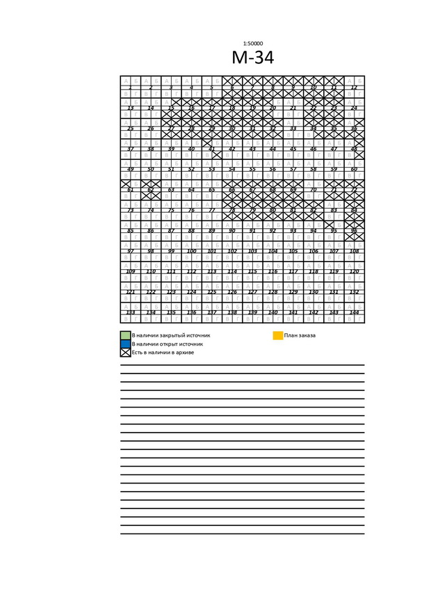 Есть возможность заказа карт РККА масштабом 1:50000 (500 метровки) период 1921-1944 гг., из закрытых источников, сканы карт высокого качества от 300 до 600 точек на дюйм. Размер файла от 6 до 30 мегабайт. Получение скана до 15 рабочих дней. Карты доступные для заказ отмечены крестиком (Х). Обращаю внимание - часть карт есть в свободном доступе. По ссылке Вы можете определить нужный квадрат, относительно карты Гугл http://retromap.ru/0020090_z7_46.863135,38.347986&leftarmy=1 С вопросом по цене пишите в личку. Квадрат J-38, J-39, J-42 Сообщение отредактировано Kess: Aug 27 2021, 21:51 -------------------- С уважением Алексей.