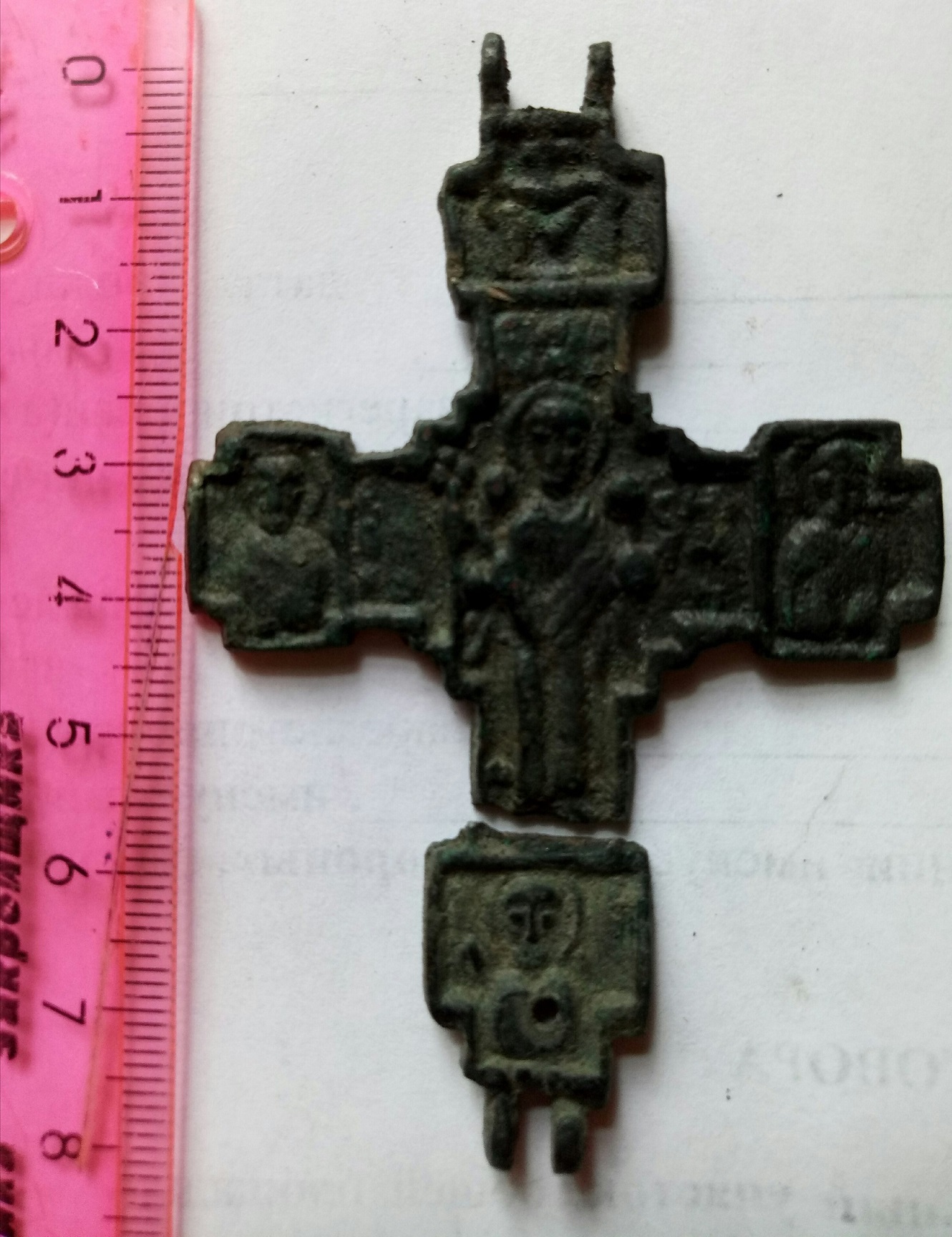 Коль уж заглянул сюда в тему, добавлю фото последней работы расчистки железного инкрустированного крестика.