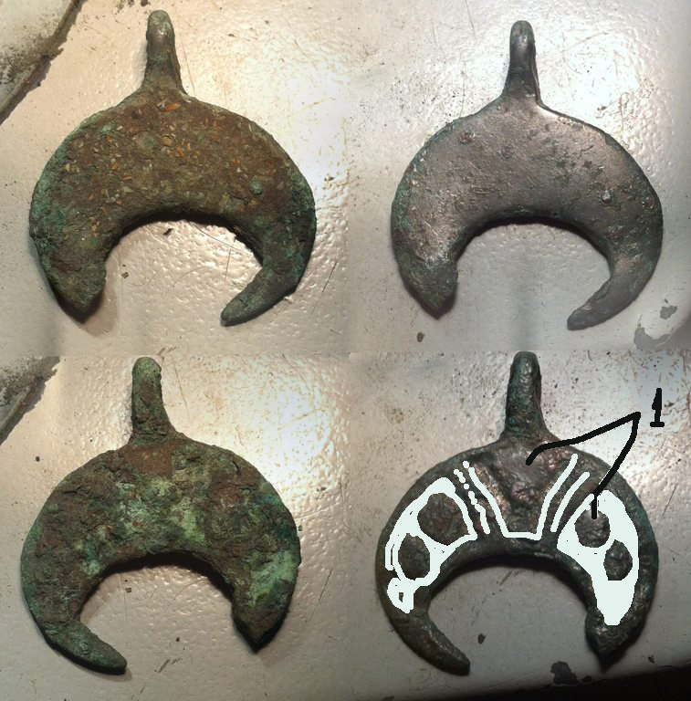 МегаМАКС по поводу твоей лунници.№1 это оригинальная поверхность.Ниже неё не заройся.Все срезания только после закрепления.Если не режется шабером,то фрезой.Если окислы высокие,то срезал,опять закрепил и опять срезал.Не какими щётками и не думай.Иди вдоль рельефа,по указанной поверхности.Рельеф виден.Удачи
