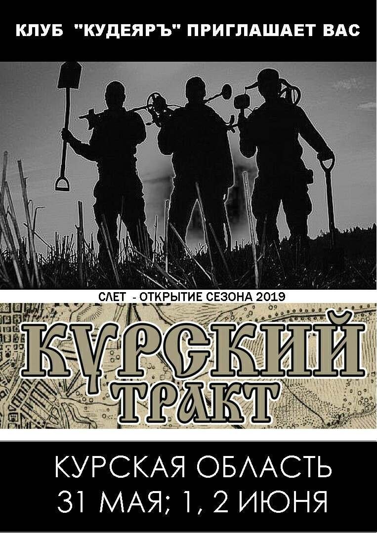 Приглашаем Вас принять участие в Слете Открытии Сезона "Курский Тракт" 1, 2 июня 2019г. (По желанию заезд с 31 мая) Информация по участию в слете здесь: Дата Проведения: 1-2 июня 2019 года. (по желанию заезд с 31 мая) • Место проведения: Курская область. (Схема проезда до места сообщается лично каждому участнику). В программе: • Конкурсы. Призы. Шашлыки. Песни у костра. Коп. Общение. Знакомство. Байки у костра. • Для регистрации необходимо оставить заявку тут: https://vk.com/topic-166844064_38733877 • Затем связаться с https://vk.com/aleksey_samoilov для получения дальнейшей информации, и получения номера банковской карты, куда необходимо будет перечислить взнос (денежные средства) за участие в слете до 28.05.2019. включительно. Ваши взносы будут потрачены на стол (шашлык, овощи, гарнир,бутерброды, чай, кофе) и скромные призы за участие в конкурсах. Алкоголь не входит, привозите сами кто что любит.) ВСТУПИТЕЛЬНЫЙ ВЗНОС: (увеличен на 100 рублей за счет подорожания всего) • Кладоискатели 800р. • Гости (Жёны, Мужья, Дети 14 +, знакомые и т д.) 450р. • Дети до 14 лет бесплатно! Денежные средства можно сдавать до 28 мая включительно! Номер карты для внесения взносов. (карта оформлена на нашего бухгалтера) СБЕРБАНК 2202 2002 7818 1407 Стародубцев Г.В. Можете также передать взносы мне лично в руки. Телефон для связи 8 951 079 71 15 При перечислении взноса на карту. Делайте пометку: "Слет. Ф.И.О." и отписывайте в личку https://vk.com/aleksey_samoilov чтобы я понимал кто внес. ПРИВЕТСТВУЕТСЯ: • Общение, взаимопомощь, уважительное отношение ко всем участникам мероприятия, культурное поведение. • Приготовление салатов или иных яств в домашних условиях и привоз их на слёт. КАТЕГОРИЧЕСКИ ЗАПРЕЩЕНО: • Чрезмерное употребление алкогольных напитков. • Привоз, пронос - огнестрельного и травматического оружия!!! • Разведение стихийных костров • Агрессивное поведение и грубость в общении. • Мусорить в лагере, оставлять мусор после окончания слёта • Езда более 5 км в час и в пьяном виде Ко всем нарушителям будут приниматься самые строгие меры, вплоть до выдворения из лагеря ! Регистрация на слет здесь: https://vk.com/topic-166844064_38733877 Телефон для связи 8 951 079 71 15 Алексей Кудеяръ Вложенные эскизы изображений -------------------- "...Плохие мысли, хуже мятой одежды..."