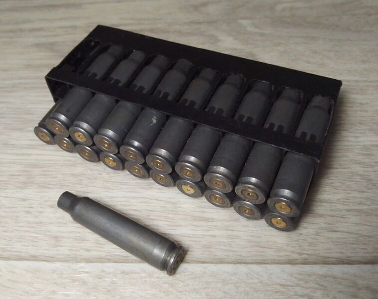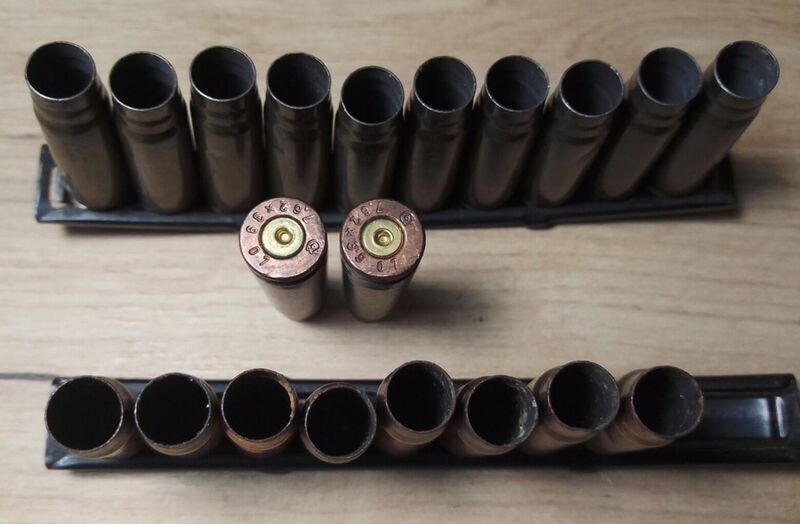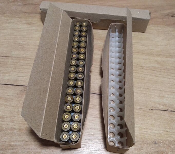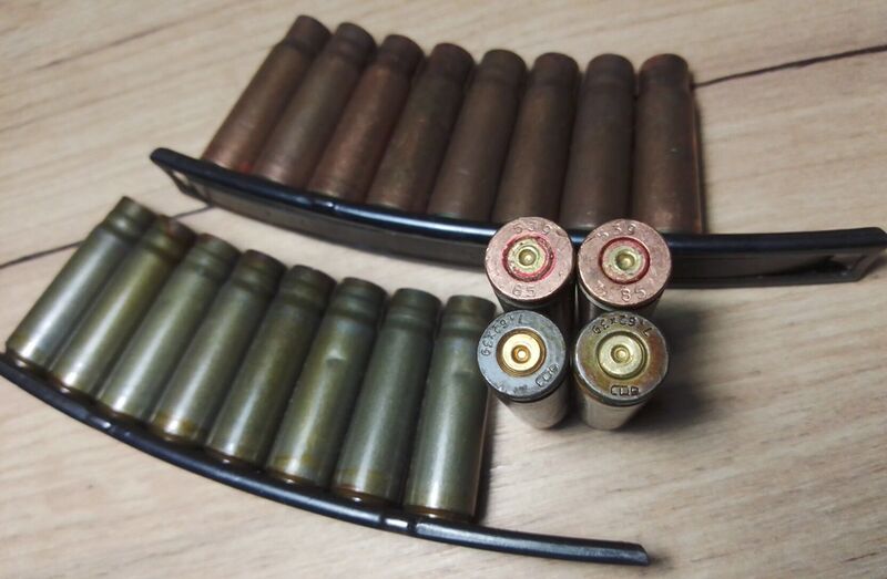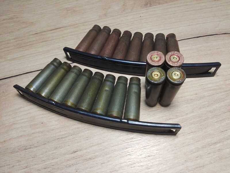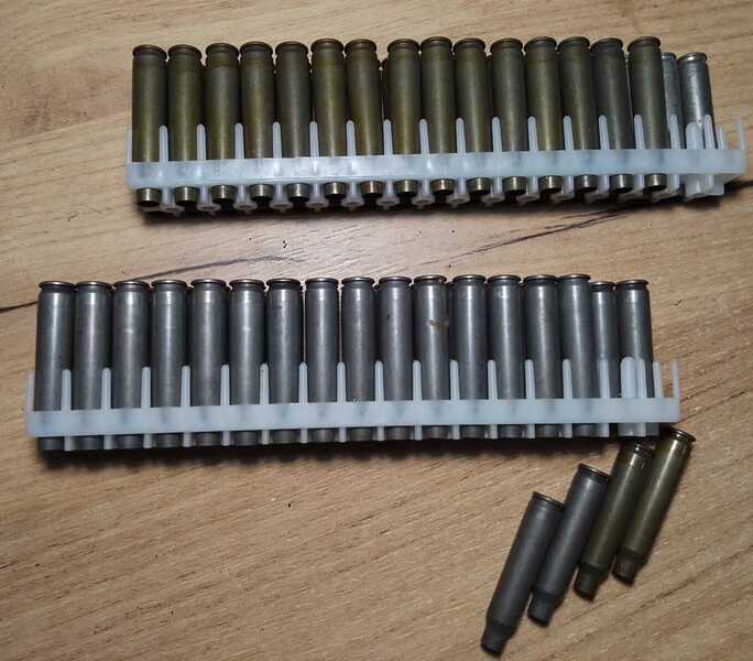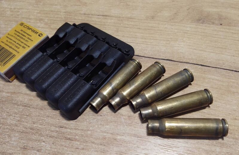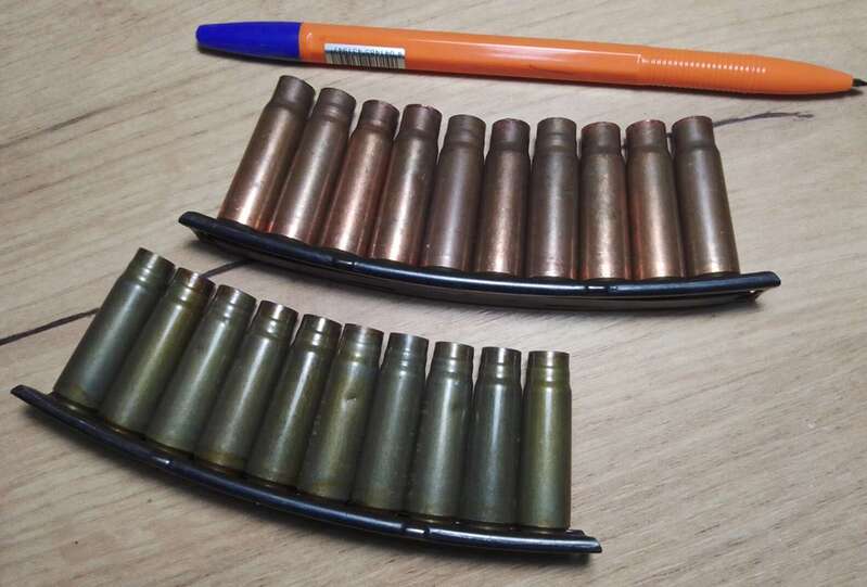 5) Гильзы 7,62×39 в скобе СКС.