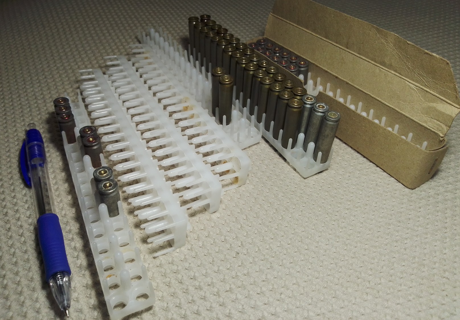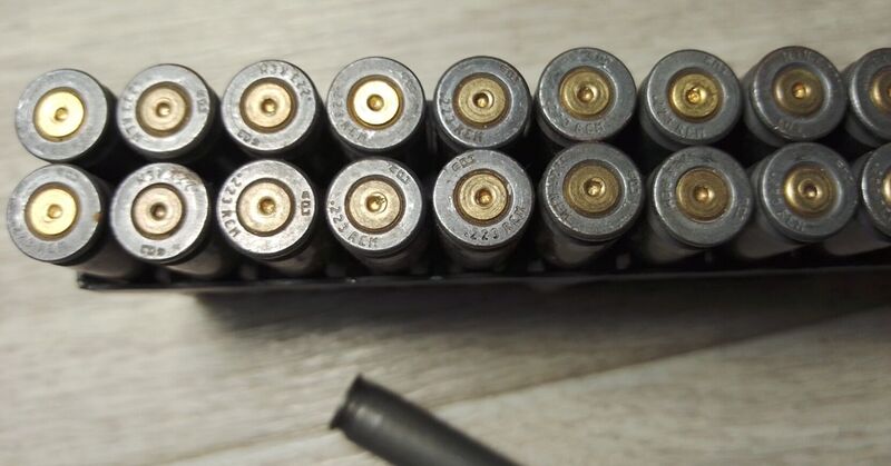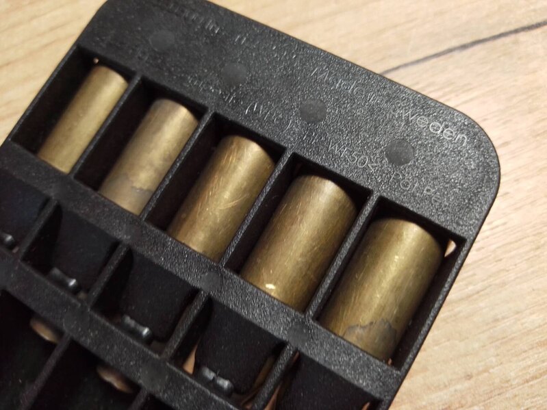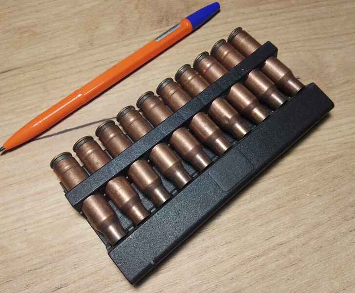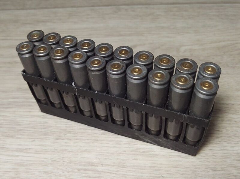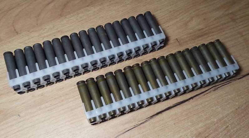 5) Гильзы 7,62×39 в скобе СКС.