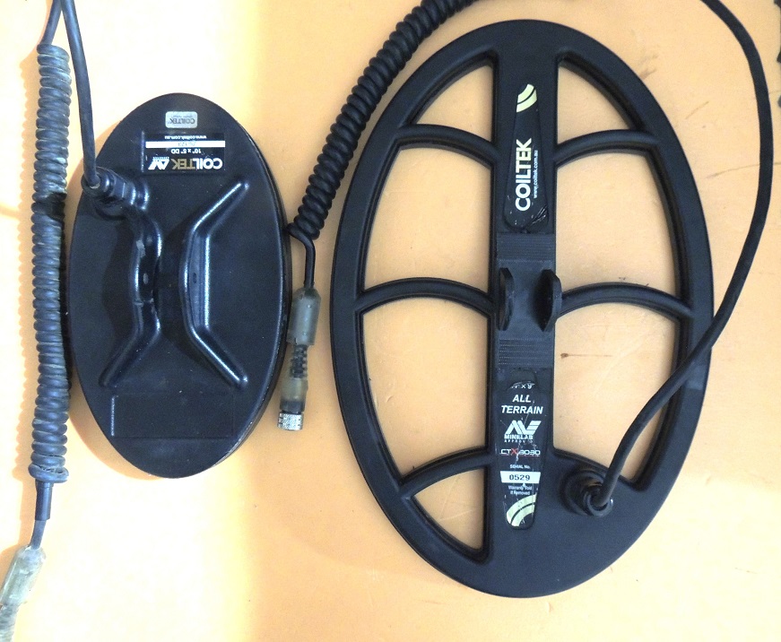 Катушки номер 17 кончились все. Но остались другие. Эллипсы для поиска в воде. Для продления сроков службы катушек уши на корпусах наклеены. Сделаны на 3 д принтере. Потому что уши на формованных корпусах протираются довольно быстро. При поиске по 8 часов, 7 дней в неделю, 30 дней в месяц, стираются не только защиты, но и уши. Катушка 6 дюймов, осталась одна. Катушки 11 дюймов есть. И две катушки КОИЛЕК в наличии.