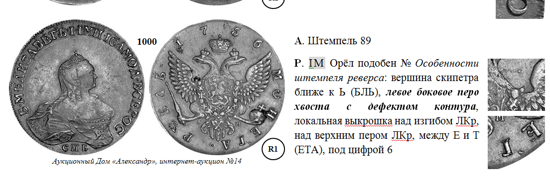 QUOTE(Altairus @ Jan 11 2022, 12:53) Описание данной штемпельной пары: аверс определяется по проекции креста короны на буквы круговой надписи и примыкающей разделительной точке к контуру буквы Е в имени императрицы (патогномоничный признак), реверс - по выкрошке под цифрой 6 и прочим описанным на представленной вырезке признакам+зацепляю еще один "засвет" данной шт. пары на "Монетах и Медалях" (видны неоднородное поле аверса, характерные следы протравливания). Так же в теме нам был показан гурт подлинного рубля периода 1754-1760 гг, ну и последнее сообщение ТС перед баном-все показанные монеты (среди которых представлен и обсуждаемый рубль)-подлинные, безвопросные, так сказать, в натурных условиях: https://www.reviewdetector.ru/index.php?sho...post&p=23656506 Вопросы возникают лишь на тему как мылось,чем мылось и для чего, ну и так, к отдельным личностям по части все ли у них нормально...но это скорее для того,чтобы понимать, что может сделать неправильная чистка, агрессивная химия с подлинной монетой, а также параноя и фуфлофобия,зависть и одиночество (привет демидову). У меня все по теме. П.С. Комментарии типа "ни разу не спец по теме монет империи, но...и дальше имею свое мнение" пропускаю, не читая, то, что покупать монету с сожженым монетным полем и по-сути утраченными признаками подлинности мало кто станет по цене оригинала-тоже понятно, но вопрос изначально стоял по подлинности предмета, когда к врачу придет пациент и спросит есть у него онкология или нет,а в ответ получит что-то типа не знаю как у вас,но у меня точно нет или я ниразу не врач, подрабатываю тут грузчиком на полставки, но давайте ваши снимки сейчас я посмотрю...ну это, братцы, как бы ни о чем всё. Дальнейшее втягивание себя в дискуссию считаю излишним,что хотел все сказал и показал,а дальше делайте выводы сами для себя. +++++++++++++++++++++++++++++++++++++++++++++++++++++++++ Спасибо за мнение и фото.. ! Солидарен..ИМХО . - монета безвопросная..подлинник..!! С уважением.. -------------------- «Historia est magistra vitae»