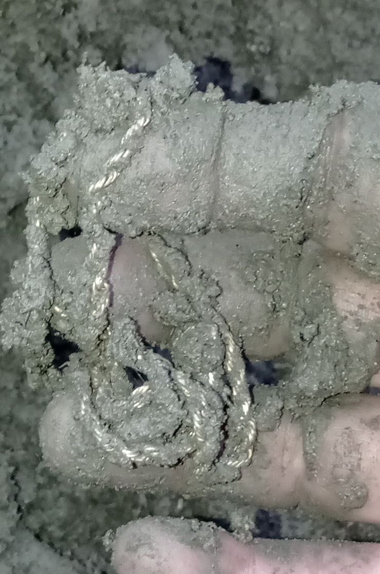 неделю уже бью бывший пляж на обмелевшем озерце, лет 30 как обмелело, сейчас вонючая большая лужа, старожилы говорят, неглубоко было в лучшие времена, метра полтора, по выходным народу было как в муравейнике в основном пробки водочные - бескозырки, мелочь советы, пара колечек серебряных и одна сережка 583 пробы, нож складной - весь улов за неделю,хотел завязывать с этой лужей, а сегодня фортануло,да так, что до сих пор руки трясутся, пойду за пивасом, жене еще не показывал :cheesy небольшой затончик, плотная глина, еле расковырял , где то 10-12 см Вложенные эскизы изображений |