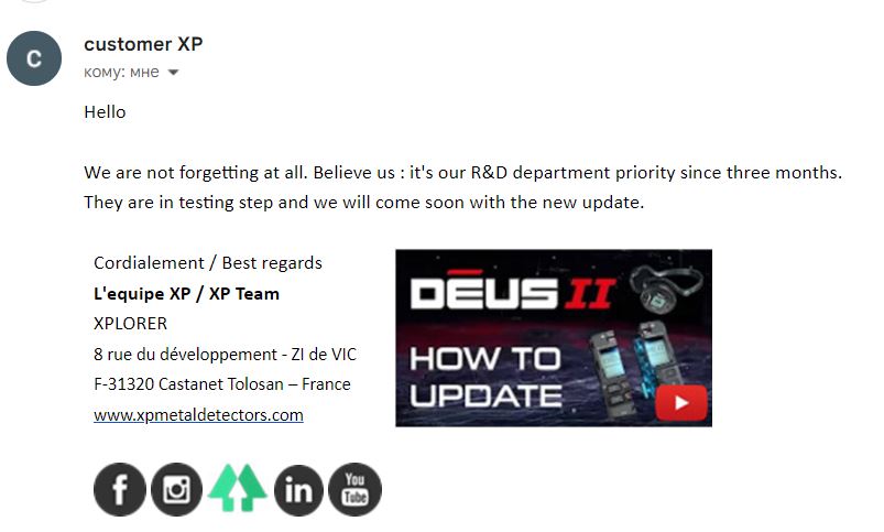 QUOTE(meehalych @ Nov 22 2022, 13:03) Недавно только приобрел этот металлоискатель и, в связи с таки пришедшей зимой, вывести его в поля не предоставилась возможность. Имеется первый Deus и вот хотелось бы понять, полифония во втором схожа с первым или отличается: по видео обзорам вроде как другая озвучка, но там и звук с блока идет, а с ушей может быть и по другому...? отличается в прошивке, о которой написал выше,, вроде как обещали поправить и сделать схожей с Д1 |