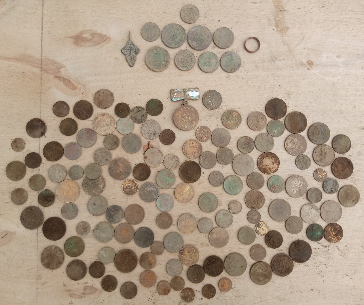 QUOTE(ИгорьЧ @ May 15 2023, 10:52) Походил по деревне, исчезнувшей в 70-ые на 4 программе. Сначала настроил под себя, тона и pwm аудио (ну не приверженец я "квадрата"), по сути то это программа № 2. Ходил с полчаса, так ничего не найдя и недоумевая, "неужели так почистили"? Поймав себя на мысли, что не понимаю что под катушкой и памятуя, что в инструкции сказано - " в режиме Pitch с Reactivity установленной на 3, вместо 2.5, с использованием функции Audio Square. Комбинирование 3 настроек обеспечивает быструю работу в грунтах замусоренных металлом и минерализированных", переключил все обратно. И да, именно сочетание этих основных настроек начало давать результат. Подстроил только дискрим(+25) и чувствительность. Так что это не совсем программа 2. Думаю, что №4 очень хорошо зарекомендует себя на шурфе. Пока не понял как звучат глубокие цели, но это поправимо. Цветнит плоское и ржавое, под конец уже стал отличать. В этом и беда и сила прибора - он очень тонко заточен и на комбинацию настроек. И на попадание всех факторов и условий в благоприятный диапазон, где поиск на конкретном месте раскроется. Ну и конечно на самого оператора - его роль здесь как никогда важная. Больше конечно в расшифровке отклика, и своевременном реагировании. Деревни простоявшие до 70-х и позже всегда были непростыми с точки зрения поиска. С конца 60-х в уклад деревни пришло много нового - это восхождение цветного мусора СССР на Олимп. Тут начинает попадаться все - пробки, различный алюминий, проволка, фольга, крупное не кованное железо (в простонародье чермет). Ну и конечно (по крайней мере в моих регионах) - это сильная зависимость находок от участков поиска. Если на довоенной или тем более царской деревне ты можешь найти монеты практически везде (фундаменты, огороды, дороги, пятачки между/перед домами, места отдыха рядом с деревней), то для позднесоветской многое из этого просто завалено хламом. И нужно искать свои точечные зоны, где соотношение мусор/полезное будет приемлимым. Тоже в субботу и часть воскресенья ходил по таким местам. Да, приходилось выставлять высокий дискрим (вплоть до 46), вырезать верхний вди с алюминием. Приходилось искать пятачки именно с мелким железом/мусором и монетами, где у Д2 очень хороший шанс и возможность выковыривать их из земли. И все это между огромными ямами других камрадов, которые с упорством копают оцветненное железо и алюминий, не имея возможности или желания охотиться именно за мелочью. Итог ниже, 132 монетки. Пусть большинство и бесполезные советики, но эмоции от находок в наше время и так не сильно балуют. Сообщение отредактировано AlwaysCocaCola: May 15 2023, 11:24 Вложенные эскизы изображений -------------------- Спросишь сколько стоит и как глубоко берет-плюну в лицо, как стабилен+дискриминирует цель—пожму руку