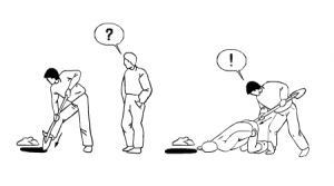 Мне больше понравился вариант с радиационными наклейками! На вопрос-что тут радиация!? услышав в ответ-нет, просто монетки ищем, мало кто поверит и поспешит от греха ретироваться!)))))