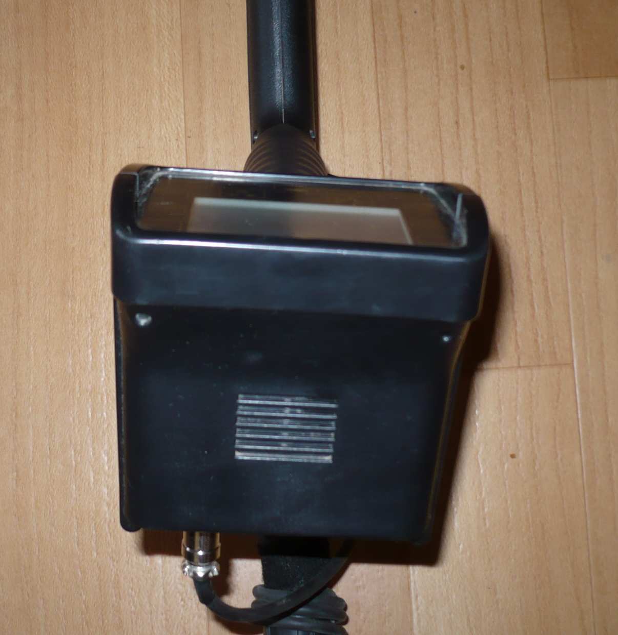 Набив в очередной раз мозоль от рукоятки, провел небольшую модернизацию: 1. Рукоятка была укорочена примерно на 10 мм (почти до крепежных винтов головы) и обмотана по спирали половинкой клейкого оконного уплотнителя (как в ДД катушке Терр Поверх уплотнителя - усажена термоусадка диаметром 50мм. Получилось вот так: Мягко, упруго и грязь легко смыть. 2. За счет того, что головы прибора имеет небольшой осевой люфт в рукоятке, повернул ее примерно на 5 градусов к оператору, в таком положении засверлил новые отверстия в хвостовике головы, закрепил сквозным винтом через старые отверстия в рукоятке. |